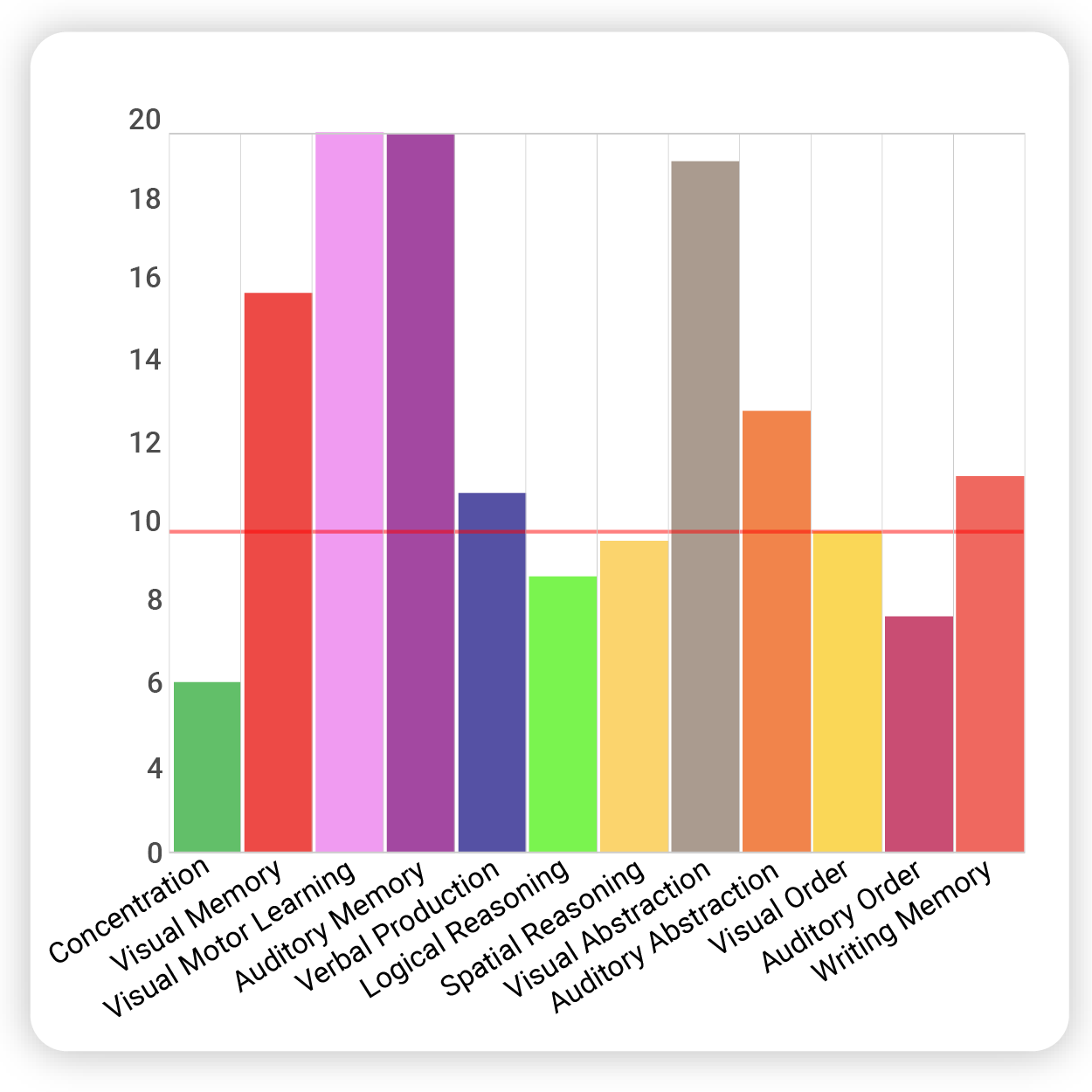 Our standardized cognitive assessments are the same type of assessments that you would find in the Wechsler Intelligence Test which is one of the most common tests among educators to determine your IQ. The problem with these types of tests is they focus on the average of the multiple assessments given and give you one number. They fail to clearly highlight exactly what your cognitive strengths and weaknesses are and how they can help or hinder you academically, vocationally, and professionally. The even bigger problem is to take one of these traditional in-person assessments with an educational psychologist that specializes in administering them is it takes one to two days and costs up to $5,000 to $8,000 nowadays. It is not practical & not affordable for most people.